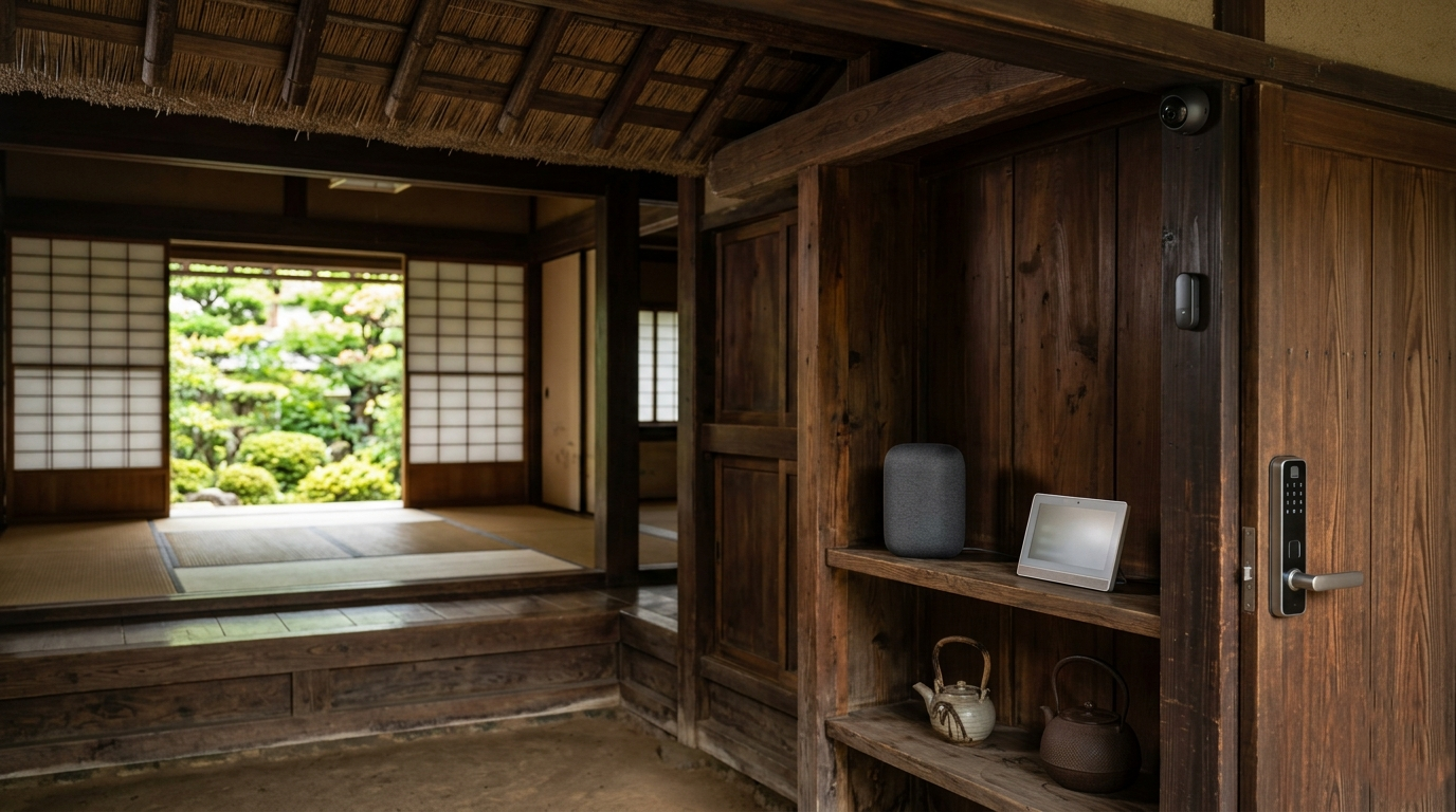 古民家の多くは開放的な造りであり、現代的な無機質な防犯カメラやセンサーは外観を著しく損ねる可能性があります。